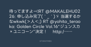 待ってますよー♫RT @MAKALEHU0226: 申し込み完了(`_´)ゞ 当選するかなwkwk(>人<;) RT @yohito_teraoka: Golden Circle Vol.16“ジュンスカ×ユニコーン”決定! http://goldencircle.jp/