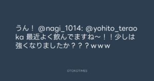 寺岡呼人 @yohito_teraoka – 0:56・2011年9月17日 2011 9/17 寺岡呼人 2011-09-17 うん! @nagi_1014: @yohito_teraoka 最近よく飲んでますね~!!少しは強くなりましたか???www Source:https://x.com/yohito_teraoka/status/11472937017... text X Post 寺岡呼人 寺岡呼人 この記事が気に入ったら フォローしてね! Follow @OtokoTimes1988 よかったらシェアしてね! URLをコピーしました! 寺岡呼人 @yohito_teraoka - 0:54・2011年9月17日 寺岡呼人 @yohito_teraoka - 0:57・2011年9月17日 関連記事 Artist 寺岡呼人 1968.02.07
