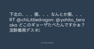寺岡呼人 @yohito_teraoka – 0:57・2011年9月17日 2011 9/17 寺岡呼人 2011-09-17 下北の、、、園、、、なんとか園、、、RT @chiLittledragon: @yohito_teraoka どこのギョーザたべたんですかぁ?泥酔最高デスネ☆ Source:https://x.com/yohito_teraoka/status/11472954291... text X Post 寺岡呼人 寺岡呼人 この記事が気に入ったら フォローしてね! Follow @OtokoTimes1988 よかったらシェアしてね! URLをコピーしました! 寺岡呼人 @yohito_teraoka - 0:56・2011年9月17日 青山英樹 @aoyama_hideki - 1:33・2011年9月17日 関連記事 Artist 寺岡呼人 1968.02.07