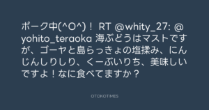 寺岡呼人 @yohito_teraoka – 23:30・2011年9月23日 2011 9/23 寺岡呼人 2011-09-23 ポーク中(^O^)! RT @whity_27: @yohito_teraoka 海ぶどうはマストですが、ゴーヤと島らっきょの塩揉み、にんじんしりしり、くーぶいりち、美味しいですよ!なに食べてますか? Source:https://x.com/yohito_teraoka/status/11724442521... text X Post 寺岡呼人 寺岡呼人 この記事が気に入ったら フォローしてね! Follow @OtokoTimes1988 よかったらシェアしてね! URLをコピーしました! 寺岡呼人 @yohito_teraoka - 23:29・2011年9月23日 寺岡呼人 @yohito_teraoka - 23:32・2011年9月23日 関連記事 Artist 寺岡呼人 1968.02.07