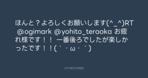 寺岡呼人 @yohito_teraoka – 15:15・2011年9月27日 2011 9/27 寺岡呼人 2011-09-27 ほんと?よろしくお願いします(^_^)RT @ogimark @yohito_teraoka お疲れ様です!! 一番後ろでしたが楽しかったです!!(`・ω・´) Source:https://x.com/yohito_teraoka/status/11856942272... text X Post 寺岡呼人 寺岡呼人 この記事が気に入ったら フォローしてね! Follow @OtokoTimes1988 よかったらシェアしてね! URLをコピーしました! 寺岡呼人 @yohito_teraoka - 15:14・2011年9月27日 寺岡呼人 @yohito_teraoka - 16:19・2011年9月27日 関連記事 Artist 寺岡呼人 1968.02.07