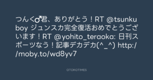 つんく♂君、ありがとう!RT @tsunkuboy ジュンスカ完全復活おめでとうございます!RT @yohito_teraoka: 日刊スポーツなう!記事デカデカ(^_^) http://moby.to/wd8yv7