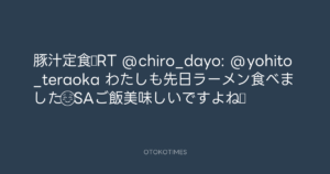 寺岡呼人 @yohito_teraoka – 0:05・2011年10月5日 2011 10/05 寺岡呼人 2011-10-05 豚汁定食♫RT @chiro_dayo: @yohito_teraoka わたしも先日ラーメン食べました☺SAご飯美味しいですよね♪ Source:https://x.com/yohito_teraoka/status/12123946195... text X Post 寺岡呼人 寺岡呼人 この記事が気に入ったら フォローしてね! Follow @OtokoTimes1988 よかったらシェアしてね! URLをコピーしました! 寺岡呼人 @yohito_teraoka - 0:04・2011年10月5日 寺岡呼人 @yohito_teraoka - 0:13・2011年10月5日 関連記事 Artist 寺岡呼人 1968.02.07
