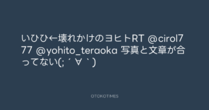 いひひ←壊れかけのヨヒトRT @cirol777 @yohito_teraoka 写真と文章が合ってない(;´∀`)