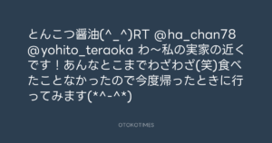 寺岡呼人 @yohito_teraoka – 23:58・2011年10月7日 2011 10/07 寺岡呼人 2011-10-07 とんこつ醤油(^_^)RT @ha_chan78 @yohito_teraoka わ〜私の実家の近くです!あんなとこまでわざわざ(笑)食べたことなかったので今度帰ったときに行ってみます(*^-^*) Source:https://x.com/yohito_teraoka/status/12232491977... text X Post 寺岡呼人 寺岡呼人 この記事が気に入ったら フォローしてね! Follow @OtokoTimes1988 よかったらシェアしてね! URLをコピーしました! 寺岡呼人 @yohito_teraoka - 23:57・2011年10月7日 寺岡呼人 @yohito_teraoka - 0:09・2011年10月8日 関連記事 Artist 寺岡呼人 1968.02.07
