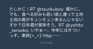たしかに!RT @tsunkuboy: 確かに。でも、食べる好みも若い頃と違って土地土地の肴がキュンキュン来るんじゃないすか?日本酒が美味そう。RT @yohito_teraoka: いやぁー、中年にはきついっす。車旅(>_<) http://amba.to/rlol0f