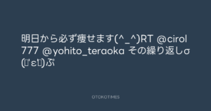 寺岡呼人 @yohito_teraoka – 14:00・2011年10月20日 2011 10/20 寺岡呼人 2011-10-20 明日から必ず痩せます(^_^)RT @cirol777 @yohito_teraoka その繰り返しσ(●’ε’●)ぷ Source:https://x.com/yohito_teraoka/status/12688558558... text X Post 寺岡呼人 寺岡呼人 この記事が気に入ったら フォローしてね! Follow @OtokoTimes1988 よかったらシェアしてね! URLをコピーしました! 寺岡呼人 @yohito_teraoka - 13:44・2011年10月20日 寺岡呼人 @yohito_teraoka - 16:41・2011年10月20日 関連記事 Artist 寺岡呼人 1968.02.07
