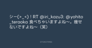 寺岡呼人 @yohito_teraoka – 14:27・2011年10月21日 2011 10/21 寺岡呼人 2011-10-21 シー(>_<)!RT @iri_kazu3: @yohito_teraoka 食べちゃいますよね~。痩せないですよね~(笑) Source:https://x.com/yohito_teraoka/status/12725472932... text X Post 寺岡呼人 寺岡呼人 この記事が気に入ったら フォローしてね! Follow @OtokoTimes1988 よかったらシェアしてね! URLをコピーしました! 寺岡呼人 @yohito_teraoka - 13:54・2011年10月21日 青山英樹 @aoyama_hideki - 18:46・2011年10月21日 関連記事 Artist 寺岡呼人 1968.02.07