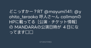どこっすかー?RT @mayumi141: @yohito_teraoka 呼人さ〜ん caIImanのHPに載ってる[公演・チケット情報]の MANDARAの公演日時が 4日になってます□□