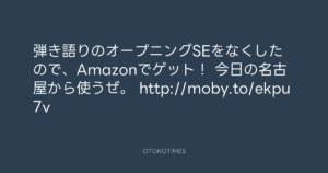 弾き語りのオープニングSEをなくしたので、Amazonでゲット! 今日の名古屋から使うぜ。 http://moby.to/ekpu7v