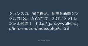 寺岡呼人 @yohito_teraoka – 17:51・2011年12月17日 2011 12/17 寺岡呼人 2011-12-17 ジュンスカ、完全復活。新曲&新録シングルはTSUTAYAだけ!2011.12.21 レンタル開始! http://junskywalkers.jp/information/index.php?e=28 Source:https://x.com/yohito_teraoka/status/14796218520... text X Post 寺岡呼人 寺岡呼人 この記事が気に入ったら フォローしてね! Follow @OtokoTimes1988 よかったらシェアしてね! URLをコピーしました! 寺岡呼人 @yohito_teraoka - 16:04・2011年12月17日 寺岡呼人 @yohito_teraoka - 18:19・2011年12月17日 関連記事 Artist 寺岡呼人 1968.02.07