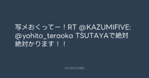 写メおくってー!RT @KAZUMIFIVE: @yohito_teraoka TSUTAYAで絶対絶対かります!!
