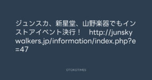 寺岡呼人 @yohito_teraoka – 10:21・2012年1月13日 2012 1/13 寺岡呼人 2012-01-13 ジュンスカ、新星堂、山野楽器でもインストアイベント決行! http://junskywalkers.jp/information/index.php?e=47 Source:https://x.com/yohito_teraoka/status/15763323948... text X Post 寺岡呼人 寺岡呼人 この記事が気に入ったら フォローしてね! Follow @OtokoTimes1988 よかったらシェアしてね! URLをコピーしました! 青山英樹 @aoyama_hideki - 3:37・2012年1月13日 寺岡呼人 @yohito_teraoka - 10:22・2012年1月13日 関連記事 Artist 寺岡呼人 1968.02.07