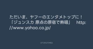 寺岡呼人 @yohito_teraoka – 23:58・2012年1月22日 2012 1/22 寺岡呼人 2012-01-22 ただいま、ヤフーのエンタメトップに!「ジュンスカ 原点の原宿で熱唱」 http://www.yahoo.co.jp/ Source:https://x.com/yohito_teraoka/status/16110035627... text X Post 寺岡呼人 寺岡呼人 この記事が気に入ったら フォローしてね! Follow @OtokoTimes1988 よかったらシェアしてね! URLをコピーしました! 青山英樹 @aoyama_hideki - 16:33・2012年1月22日 青山英樹 @aoyama_hideki - 1:38・2012年1月23日 関連記事 Artist 寺岡呼人 1968.02.07