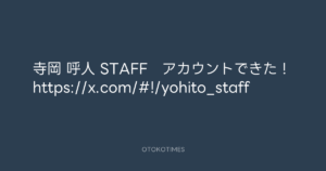 寺岡 呼人 STAFF アカウントできた! https://x.com/#!/yohito_staff