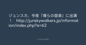 寺岡呼人 @yohito_teraoka – 12:41・2012年2月10日 2012 2/10 寺岡呼人 2012-02-10 ジュンスカ、今夜「僕らの音楽」に出演! http://junskywalkers.jp/information/index.php?e=62 Source:https://x.com/yohito_teraoka/status/16781547732... text X Post 寺岡呼人 寺岡呼人 この記事が気に入ったら フォローしてね! Follow @OtokoTimes1988 よかったらシェアしてね! URLをコピーしました! 寺岡呼人 @yohito_teraoka - 11:45・2012年2月10日 寺岡呼人 @yohito_teraoka - 12:46・2012年2月10日 関連記事 Artist 寺岡呼人 1968.02.07