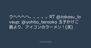 ウヘヘヘヘ。。。。。RT @takasu_loveup: @yohito_teraoka 玉子かけご飯より、アイコンのラーメン!(笑)
