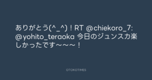 ありがとう(^_^)!RT @chiekoro_7: @yohito_teraoka 今日のジュンスカ楽しかったです~~~!