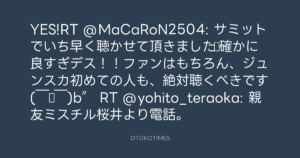 YES!RT @MaCaRoN2504: サミットでいち早く聴かせて頂きました☆確かに良すぎデス!!ファンはもちろん、ジュンスカ初めての人も、絶対聴くべきです( ̄▽ ̄)b″ RT @yohito_teraoka: 親友ミスチル桜井より電話。