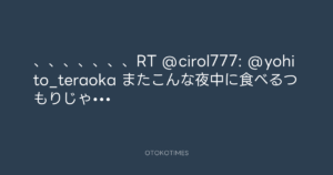 寺岡呼人 @yohito_teraoka – 2:26・2012年3月20日 2012 3/20 寺岡呼人 2012-03-20 、、、、、、、RT @cirol777: @yohito_teraoka またこんな夜中に食べるつもりじゃ••• Source:https://x.com/yohito_teraoka/status/18179369204... text X Post 寺岡呼人 寺岡呼人 この記事が気に入ったら フォローしてね! Follow @OtokoTimes1988 よかったらシェアしてね! URLをコピーしました! 寺岡呼人 @yohito_teraoka - 2:25・2012年3月20日 寺岡呼人 @yohito_teraoka - 9:37・2012年3月20日 関連記事 Artist 寺岡呼人 1968.02.07