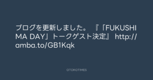 ブログを更新しました。 『「FUKUSHIMA DAY」トークゲスト決定』 http://amba.to/GB1Kqk