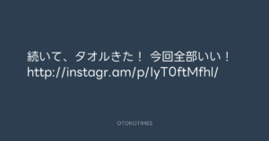 寺岡呼人 @yohito_teraoka – 15:14・2012年3月30日 2012 3/30 寺岡呼人 2012-03-30 続いて、タオルきた! 今回全部いい! http://instagr.am/p/IyT0ftMfhl/ Source:https://x.com/yohito_teraoka/status/18561083475... text X Post 寺岡呼人 寺岡呼人 この記事が気に入ったら フォローしてね! Follow @OtokoTimes1988 よかったらシェアしてね! URLをコピーしました! 寺岡 呼人 @yohitoteraoka - 15:13・2012年3月30日(IG post) 寺岡呼人 @yohito_teraoka - 15:19・2012年3月30日 関連記事 Artist 寺岡呼人 1968.02.07