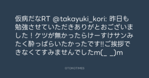 寺岡呼人 @yohito_teraoka – 23:14・2012年3月31日 2012 3/31 寺岡呼人 2012-03-31 仮病だなRT @takayuki_kori: 昨日も勉強させていただきありがとおございました!ケツが無かったらけーすけサンみたく酔っぱらいたかったです!!ご挨拶できなくてすみませんでしたm(_ _)m Source:https://x.com/yohito_teraoka/status/18609420920... text X Post 寺岡呼人 寺岡呼人 この記事が気に入ったら フォローしてね! Follow @OtokoTimes1988 よかったらシェアしてね! URLをコピーしました! 寺岡呼人 @yohito_teraoka - 22:37・2012年3月31日 寺岡呼人 @yohito_teraoka - 23:45・2012年3月31日 関連記事 Artist 寺岡呼人 1968.02.07
