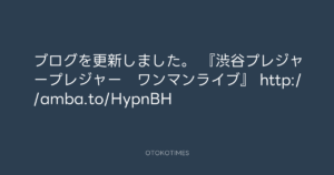 寺岡呼人 @yohito_teraoka – 0:10・2012年4月1日 2012 4/01 寺岡呼人 2012-04-01 ブログを更新しました。 『渋谷プレジャープレジャー ワンマンライブ』 http://amba.to/HypnBH Source:https://x.com/yohito_teraoka/status/18610826954... text X Post 寺岡呼人 寺岡呼人 この記事が気に入ったら フォローしてね! Follow @OtokoTimes1988 よかったらシェアしてね! URLをコピーしました! 寺岡呼人 @yohito_teraoka - 23:45・2012年3月31日 寺岡呼人 @yohito_teraoka - 9:20・2012年4月1日 関連記事 Artist 寺岡呼人 1968.02.07