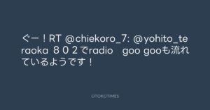 寺岡呼人 @yohito_teraoka – 23:04・2012年4月4日 2012 4/04 寺岡呼人 2012-04-04 ぐー!RT @chiekoro_7: @yohito_teraoka 802でradio goo gooも流れているようです! Source:https://x.com/yohito_teraoka/status/18754123531... text X Post 寺岡呼人 寺岡呼人 この記事が気に入ったら フォローしてね! Follow @OtokoTimes1988 よかったらシェアしてね! URLをコピーしました! 寺岡呼人 @yohito_teraoka - 22:48・2012年4月4日 青山英樹 @aoyama_hideki - 9:34・2012年4月5日 関連記事 Artist 寺岡呼人 1968.02.07