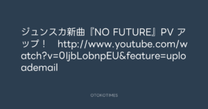 寺岡呼人 @yohito_teraoka – 1:08・2012年4月12日 2012 4/12 寺岡呼人 2012-04-12 ジュンスカ新曲『NO FUTURE』PV アップ! http://www.youtube.com/watch?v=0IjbLobnpEU&feature=uploademail Source:https://x.com/yohito_teraoka/status/19010903393... text X Post 寺岡呼人 寺岡呼人 この記事が気に入ったら フォローしてね! Follow @OtokoTimes1988 よかったらシェアしてね! URLをコピーしました! Koyo Maeda @koyomaeda - 23:25・2012年4月11日 寺岡呼人 @yohito_teraoka - 1:09・2012年4月12日 関連記事 Artist 寺岡呼人 1968.02.07