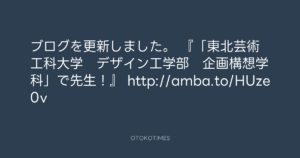 寺岡呼人 @yohito_teraoka – 12:51・2012年4月21日 2012 4/21 寺岡呼人 2012-04-21 ブログを更新しました。 『「東北芸術工科大学 デザイン工学部 企画構想学科」で先生!』 http://amba.to/HUze0v Source:https://x.com/yohito_teraoka/status/19354752668... text X Post 寺岡呼人 寺岡呼人 この記事が気に入ったら フォローしてね! Follow @OtokoTimes1988 よかったらシェアしてね! URLをコピーしました! Koyo Maeda @koyomaeda - 12:26・2012年4月21日 寺岡呼人 @yohito_teraoka - 13:13・2012年4月21日 関連記事 Artist 寺岡呼人 1968.02.07