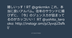 嬉しいっす!RT @gnkrmkn これ、本当に良いアルバム。往年のサウンドに媚びずに、「今」のジュンスカが詰まってるのがカッコいい! RT @yohito_teraoka: http://instagr.am/p/JyvqU3sfkl/
