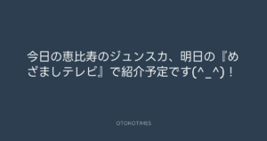 今日の恵比寿のジュンスカ、明日の『めざましテレビ』で紹介予定です(^_^)!