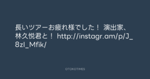長いツアーお疲れ様でした! 演出家、林久悦君と! http://instagr.am/p/J_8zI_Mfik/