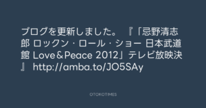 寺岡呼人 @yohito_teraoka – 14:57・2012年5月8日 2012 5/08 寺岡呼人 2012-05-08 ブログを更新しました。 『「忌野清志郎 ロックン・ロール・ショー 日本武道館 Love&Peace 2012」テレビ放映決』 http://amba.to/JO5SAy Source:https://x.com/yohito_teraoka/status/19973972662... text X Post 寺岡呼人 寺岡呼人 この記事が気に入ったら フォローしてね! Follow @OtokoTimes1988 よかったらシェアしてね! URLをコピーしました! 青山英樹 @aoyama_hideki - 1:09・2012年5月8日 青山英樹 @aoyama_hideki - 22:07・2012年5月8日 関連記事 Artist 寺岡呼人 1968.02.07