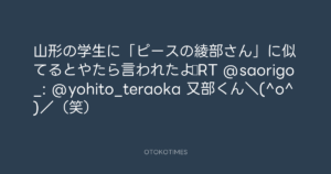 山形の学生に「ピースの綾部さん」に似てるとやたら言われたよ♫RT @saorigo_: @yohito_teraoka 又部くん\(^o^)/(笑)