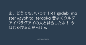寺岡呼人 @yohito_teraoka – 14:25・2012年5月9日 2012 5/09 寺岡呼人 2012-05-09 ま、どうでもいいっす!RT @deb_master @yohito_teraoka 昔よくウルグアイパラグアイの人と試合したよ! 今はじゃぴょんだっけ w Source:https://x.com/yohito_teraoka/status/20009402733... text X Post 寺岡呼人 寺岡呼人 この記事が気に入ったら フォローしてね! Follow @OtokoTimes1988 よかったらシェアしてね! URLをコピーしました! 寺岡呼人 @yohito_teraoka - 13:29・2012年5月9日 寺岡呼人 @yohito_teraoka - 14:25・2012年5月9日 関連記事 Artist 寺岡呼人 1968.02.07