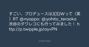すごい、プロデュースはJ(S)Wって(笑)RT @nyappo: @yohito_teraoka 渋谷のタワレコにも行ってみました! http://p.twipple.jp/ayvPN