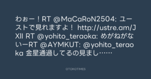 わぉー!RT @MaCaRoN2504: ユーストで見れますよ! http://ustre.am/JXlI RT @yohito_teraoka: めがねがないーRT @AYMKUT: @yohito_teraoka 金星通過してるの見ましたか?