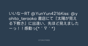 寺岡呼人 @yohito_teraoka – 13:11・2012年6月6日 2012 6/06 寺岡呼人 2012-06-06 いいなーRT @YunYun4216Kiss: @yohito_teraoka 書店にて『太陽が見える下敷き』に出逢い、先ほど見えましたーっ!!感動っ(*´∇`*) Source:https://x.com/yohito_teraoka/status/21022228543... text X Post 寺岡呼人 寺岡呼人 この記事が気に入ったら フォローしてね! Follow @OtokoTimes1988 よかったらシェアしてね! URLをコピーしました! 寺岡呼人 @yohito_teraoka - 13:03・2012年6月6日 寺岡呼人 @yohito_teraoka - 14:18・2012年6月6日 関連記事 Artist 寺岡呼人 1968.02.07