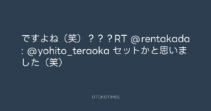 寺岡呼人 @yohito_teraoka – 16:04・2012年6月7日 2012 6/07 寺岡呼人 2012-06-07 ですよね(笑)???RT @rentakada: @yohito_teraoka セットかと思いました(笑) Source:https://x.com/yohito_teraoka/status/21062836741... text X Post 寺岡呼人 寺岡呼人 この記事が気に入ったら フォローしてね! Follow @OtokoTimes1988 よかったらシェアしてね! URLをコピーしました! 寺岡呼人 @yohito_teraoka - 13:46・2012年6月7日 寺岡 呼人 @yohitoteraoka - 18:06・2012年6月7日(IG post) 関連記事 Artist 寺岡呼人 1968.02.07