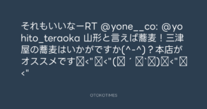 それもいいなーRT @yone__co: @yohito_teraoka 山形と言えば蕎麦!三津屋の蕎麦はいかがですか(^-^)?本店がオススメですŧ‹”ŧ‹”(๑´ㅂ`๑)ŧ‹”ŧ‹”