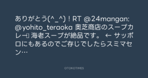 ありがとう(^_^)!RT @24mangan: @yohito_teraoka 奥芝商店のスープカレー♪ 海老スープが絶品です。 ← サッポロにもあるのでご存じでしたらスミマセン…