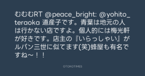 むむむRT @peace_bright: @yohito_teraoka 道産子です。青葉は地元の人は行かない店ですよ。個人的には梅光軒が好きです。店主の『いらっしゃい』がルパン三世に似てます(笑)蜂屋も有名ですね〜!!