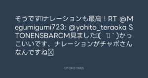 寺岡呼人 @yohito_teraoka – 9:48・2012年6月22日 2012 6/22 寺岡呼人 2012-06-22 そうです♫ナレーションも最高!RT @Megumigumi723: @yohito_teraoka STONENSBARCM見ました♪( ´▽`)かっこいいです、ナレーションがチャボさんなんですね‼ Source:https://x.com/yohito_teraoka/status/21596959319... text X Post 寺岡呼人 寺岡呼人 この記事が気に入ったら フォローしてね! Follow @OtokoTimes1988 よかったらシェアしてね! URLをコピーしました! 寺岡呼人 @yohito_teraoka - 8:15・2012年6月21日 Koyo Maeda @koyomaeda - 19:32・2012年6月22日 関連記事 Artist 寺岡呼人 1968.02.07