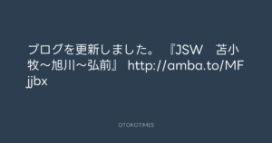寺岡呼人 @yohito_teraoka – 11:14・2012年6月24日 2012 6/24 寺岡呼人 2012-06-24 ブログを更新しました。 『JSW 苫小牧〜旭川〜弘前』 http://amba.to/MFjjbx Source:https://x.com/yohito_teraoka/status/21671590151... text X Post 寺岡呼人 寺岡呼人 この記事が気に入ったら フォローしてね! Follow @OtokoTimes1988 よかったらシェアしてね! URLをコピーしました! 寺岡呼人 @yohito_teraoka - 10:33・2012年6月24日 寺岡呼人 @yohito_teraoka - 11:34・2012年6月24日 関連記事 Artist 寺岡呼人 1968.02.07