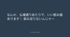 寺岡呼人 @yohito_teraoka – 0:02・2012年6月29日 2012 6/29 寺岡呼人 2012-06-29 なんか、仏壇通りあたりで、いい飲み屋あります! 飲み足りないんじゃ〜 Source:https://x.com/yohito_teraoka/status/21835883593... text X Post 寺岡呼人 寺岡呼人 この記事が気に入ったら フォローしてね! Follow @OtokoTimes1988 よかったらシェアしてね! URLをコピーしました! 寺岡呼人 @yohito_teraoka - 23:27・2012年6月28日 寺岡呼人 @yohito_teraoka - 0:40・2012年6月29日 関連記事 Artist 寺岡呼人 1968.02.07