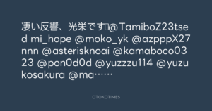 凄い反響、光栄です☆@TamiboZ23tsed mi_hope @moko_yk @azpppX27nnn @asterisknoai @kamaboco0323 @pon0d0d @yuzzzu114 @yuzukosakura @makoyz1013 @yu1ju4zu2
