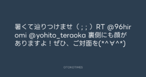 暑くて辿りつけませ( ; ; )RT @96hiromi @yohito_teraoka 裏側にも顔がありますよ!ぜひ、ご対面を(*^∀^*)