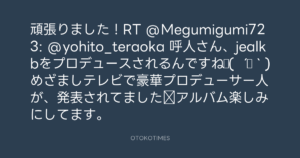 頑張りました!RT @Megumigumi723: @yohito_teraoka 呼人さん、jealkbをプロデュースされるんですね♪( ´▽`)めざましテレビで豪華プロデューサー人が、発表されてました‼アルバム楽しみにしてます。